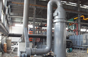 濕法二級脫硫采用沖擊水浴除塵器,經(jīng)一級除塵,煙氣中的大部分粉塵已被除掉,余下微細粉塵進入二級沖擊水浴除塵器。煙氣高速沖擊液面,激起大量液滴和水霧,煙氣中的細微粉塵與液滴、水霧充分混合碰幢,進一步除掉煙氣中的細微粉塵。煙氣中的二氧化硫與堿性脫硫液體充分接觸混合,生成亞硫酸鈣晶體沉入設(shè)備底部,經(jīng)排灰閥排出。